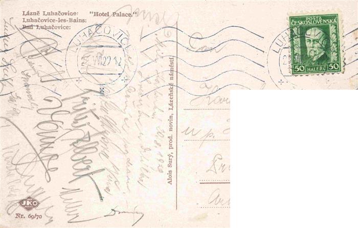 73972836 old postcard Lazne Luhacovice Bad Luhatschowitz CZ Hotel Palace postalisch gelaufen Erhaltung siehe scans [FriedD77] KatCode: 11520