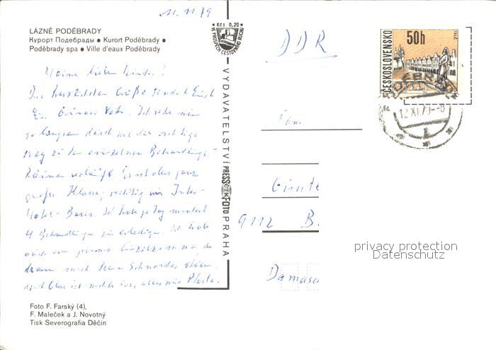 old postcard Lazne Podebrady Teilansichten Kurort Kurpark Denkmal postalisch gelaufen Erhaltung siehe scans