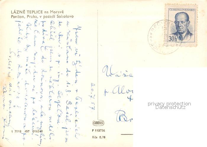 13218925 old postcard Lazne Teplice nad Becvou Pavilon Praha v pozadi Sokolovo postalisch gelaufen Erhaltung siehe scans [FriedD77] KatCode: 11520