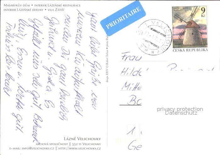 old postcard Lazne Velichovky Kuranlagen postalisch gelaufen Erhaltung siehe scans