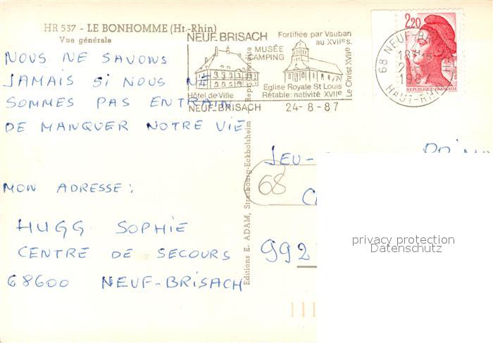 13218351 carte postale Le Bonhomme Haut Rhin Elsass Vue Generale postalisch gelaufen Erhaltung siehe scans [FriedD77] KatCode: 11170068568044