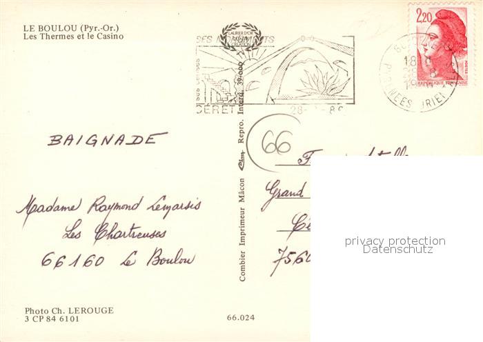 13119876 carte postale Le Boulou Thermes et Casino postalisch gelaufen Erhaltung siehe scans [LiesaD40] KatCode: 11170066166024