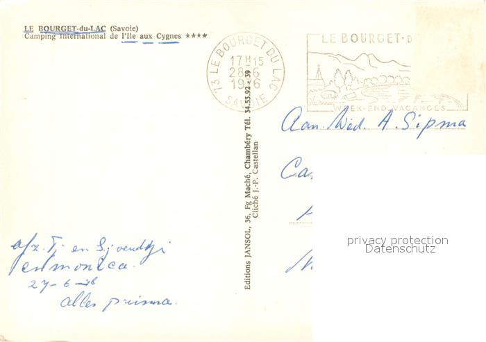 13747142 Le Bourget-du-Lac Savoie Camping International de l’Ile aux Cygnes postalisch gelaufen Erhaltung siehe scans [WerneD78] carte postale Wern Katcode 11170073273051