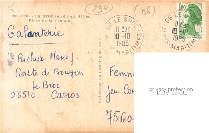 13541421 carte postale Le Broc Alpes-Maritimes Place de la Fontaine postalisch gelaufen Erhaltung siehe scans [FriedD77] KatCode: 11170006106025