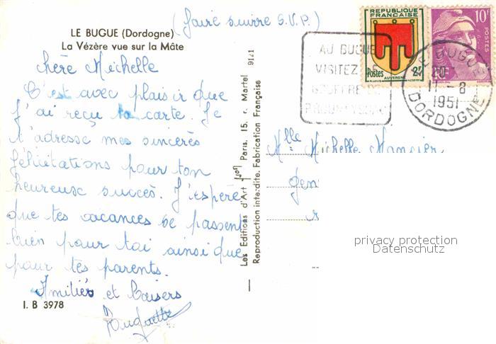 12811472 carte postale Le Bugue La Vezere vue sur la Mate postalisch gelaufen Erhaltung siehe scans [FriedD77] KatCode: 11170024424067