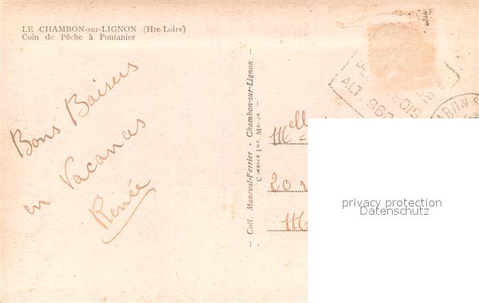 13639170 Le Chambon-sur-Lignon Coin de pêche a pontainier postalisch gelaufen Erhaltung siehe scans [FriedD77] carte postale Frie Katcode 11170043343051