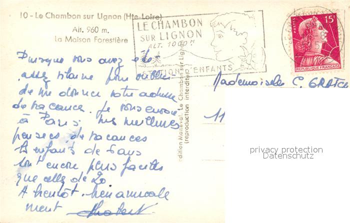 13594295 Le Chambon-sur-Lignon Maison Forestière postalisch gelaufen Erhaltung siehe scans [FriedD77] carte postale Frie Katcode 11170043343051
