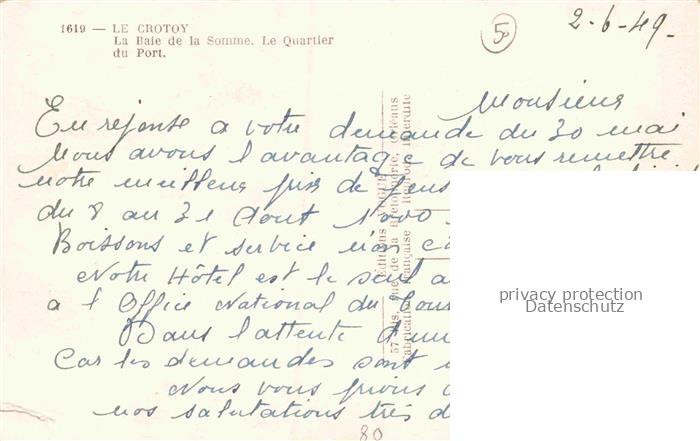 14108506 Le Crotoy ABBEVILLE 80 Somme Hôtel du Commerce Place Jeanne d’Arc postalisch nicht gelaufen Erhaltung siehe scans [FriedD77] Frie Katcode 11170080180228