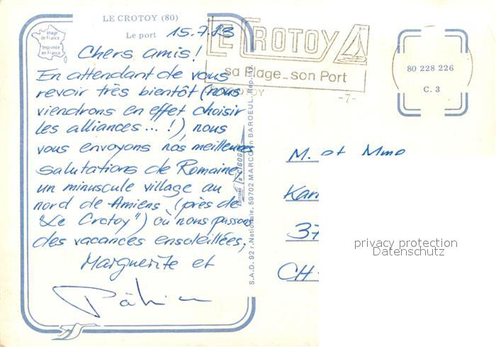 13606729 carte postale Le Crotoy Port postalisch gelaufen Erhaltung siehe scans [LiesaD40] KatCode: 11170080180228