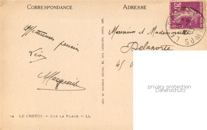 13528305 carte postale Le Crotoy Sur la plage postalisch gelaufen Erhaltung siehe scans [FriedD77] KatCode: 11170080180228