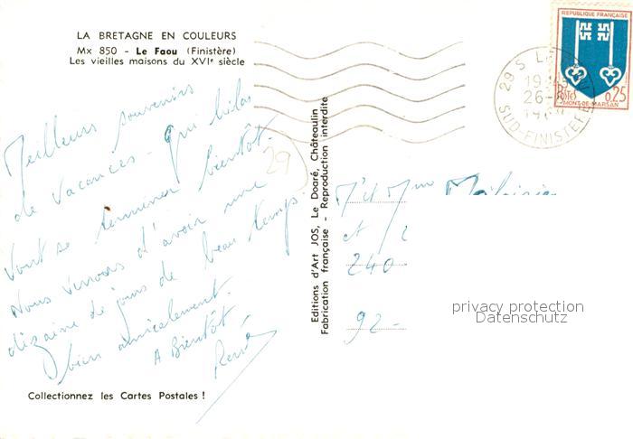13158546 carte postale Le Faou Les vieilles maisons postalisch gelaufen Erhaltung siehe scans [WerneD78] KatCode: 11170029229053