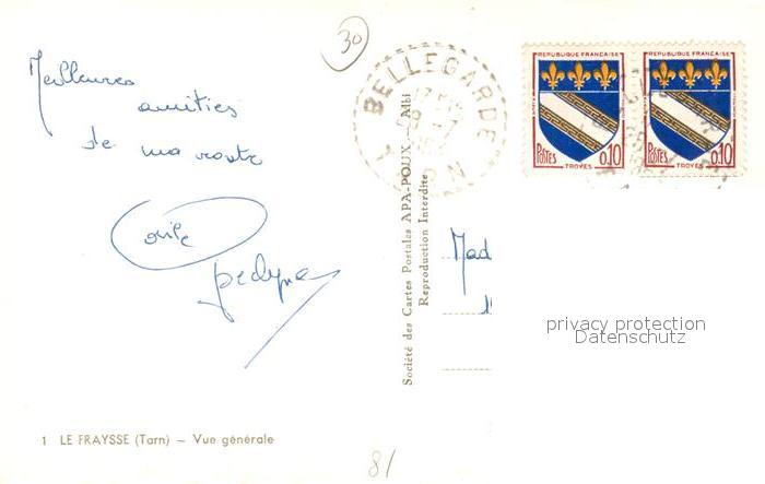 13485519 carte postale Le Fraysse Vue Generale postalisch gelaufen Erhaltung siehe scans [FriedD77] KatCode: 11170081181096