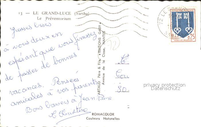 11987396 carte postale Le Grand-Luce Preventorium postalisch gelaufen Erhaltung siehe scans KatCode: 11170072172143