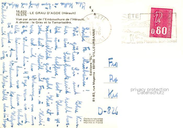 13235243 carte postale Le Grau d Agde Embouchure de l Herault a droite le Grau et la Tamarissiere vue aérienne postalisch gelaufen Erhaltung siehe scans [FriedD77] KatCode: 11170034134003