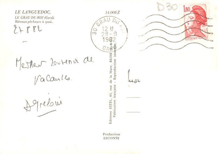 13944726 Le Grau-du-Roi 30 Gard Bateaux pecheurs a quai postalisch gelaufen Erhaltung siehe scans [FriedD77] carte postale Frie Katcode 11170030230133