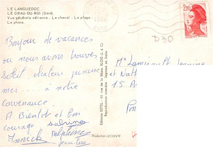 13944934 Le Grau-du-Roi 30 Gard Vue générale aérienne le chenal la plage et le phare postalisch gelaufen Erhaltung siehe scans [FriedD77] carte postale Frie Katcode 11170030230133