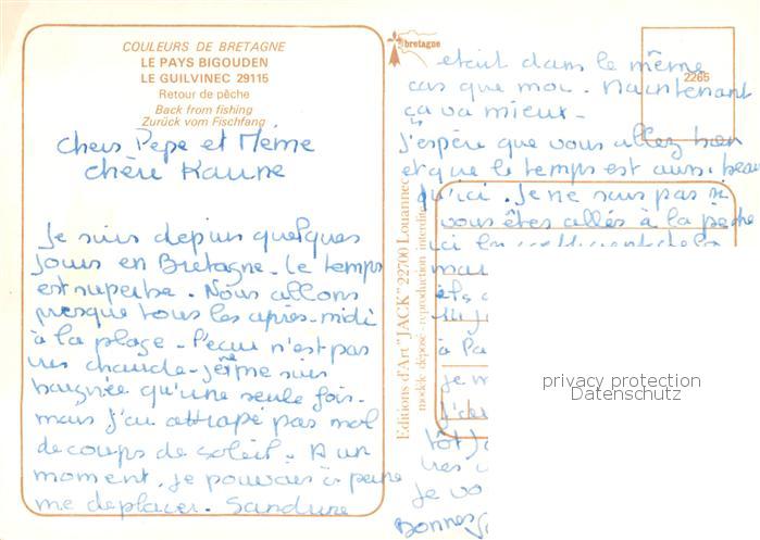 13797739 Le Guilvinec 29 Finistere Le Pays Bigouden Retour de peche postalisch nicht gelaufen Erhaltung siehe scans [WerneD78] Wern Katcode 11170029429072
