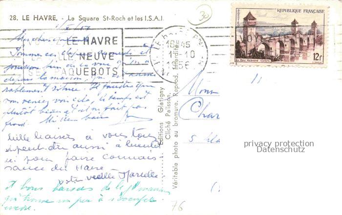 14109520 LE HAVRE 76 Le Square St. Roch et les I.S.A.I. postalisch gelaufen Erhaltung siehe scans [FriedD77] carte postale Frie Katcode 11170076276351
