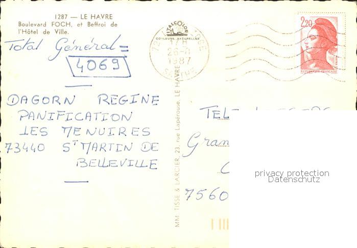 11946609 carte postale Le Havre Boulevard Foch et Beffroi de l Hotel de Ville postalisch gelaufen Erhaltung siehe scans KatCode: 11170076276351