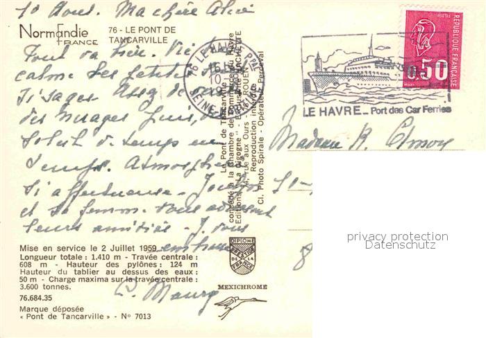 12896130 carte postale Le Havre Fliegeraufnahme Le Pont Tancarville postalisch gelaufen Erhaltung siehe scans [AndreD76] KatCode: 11170076276351