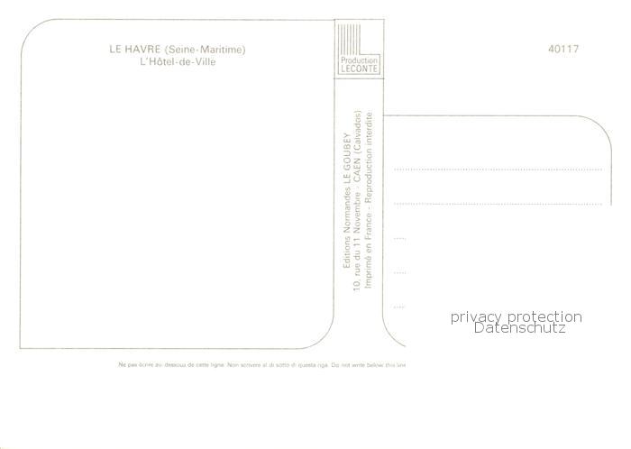 13789015 Le Havre Hôtel de Ville postalisch nicht gelaufen Erhaltung siehe scans [FriedD77] Frie Katcode 11170076276351