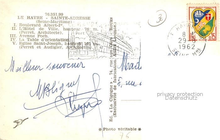 13485419 carte postale Le Havre Sainte Adresse Boulevard Albert 1. Hotel de Ville Eglise postalisch gelaufen Erhaltung siehe scans [LiesaD40] KatCode: 11170076276351