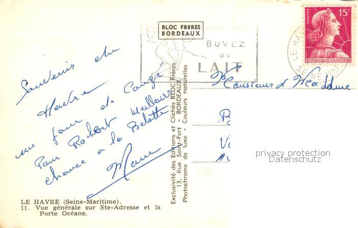 13528710 carte postale Le Havre Vue Generale sur Sainte Adresse et la Porte Océane postalisch gelaufen Erhaltung siehe scans [FriedD77] KatCode: 11170076276351