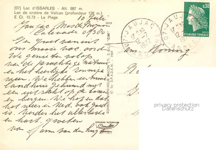 13303646 carte postale Le Lac-d Issarles Plage au lac de cratère de volcan postalisch gelaufen Erhaltung siehe scans [FriedD77] KatCode: 11170007107119