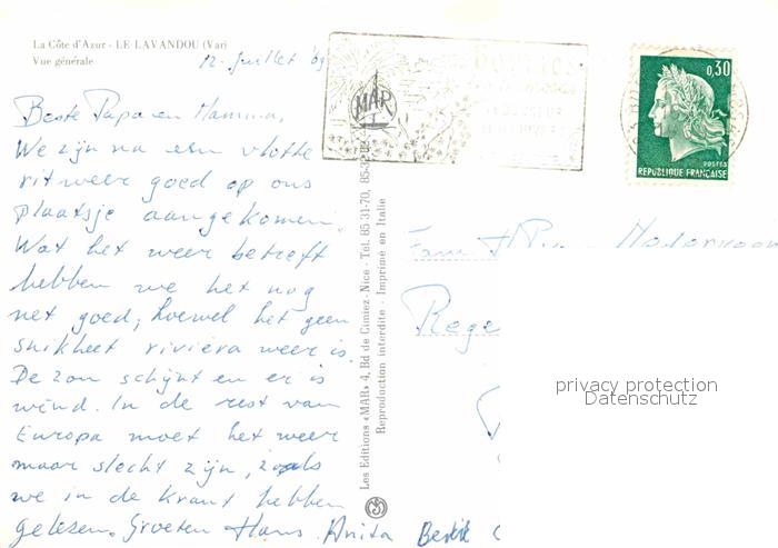 12853031 carte postale Le Lavandou postalisch gelaufen Erhaltung siehe scans [NatalD47] KatCode: 11170083283070