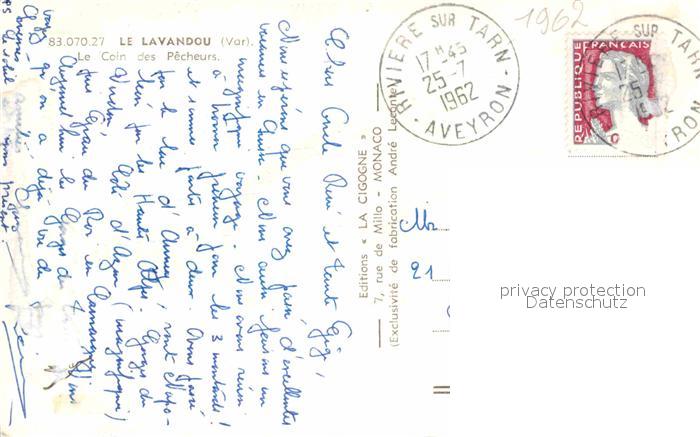 12821123 carte postale Le Lavandou Fischer postalisch gelaufen Erhaltung siehe scans [AndreD76] KatCode: 11170083283070
