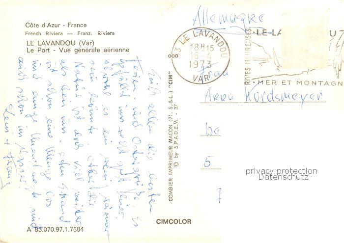 13861626 Le Lavandou Vue aérienne du port Hafen postalisch gelaufen Fliegeraufnahme Erhaltung siehe scans [FriedD77] Fliegeraufnahme carte postale Frie Katcode 11170083283070