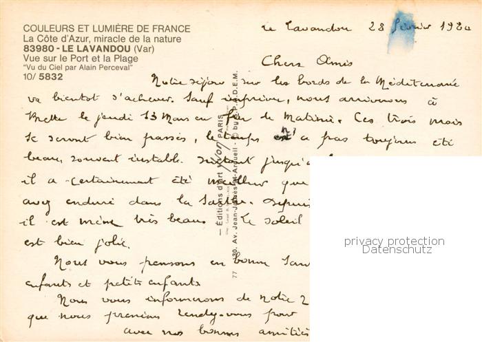 13831840 Le Lavandou Vue aerienne sur le Port et la Plage postalisch gelaufen Erhaltung siehe scans [FriedD77] carte postale Frie Katcode 11170083283070