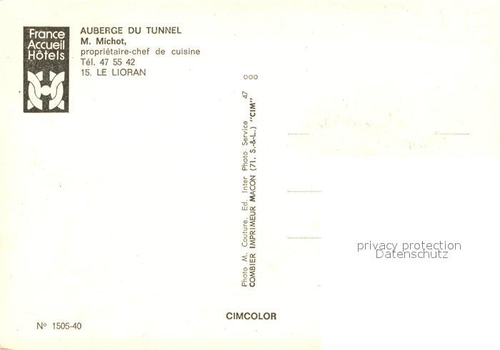 13660669 Le Lioran Auberge du Tunnel M Michot postalisch nicht gelaufen Erhaltung siehe scans [WerneD78] Wern Katcode 11170015315101