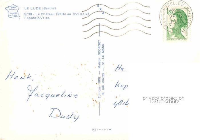 12668010 carte postale Le Lude Chateau Facade postalisch gelaufen Erhaltung siehe scans [WerneD78] KatCode: 11170072172176