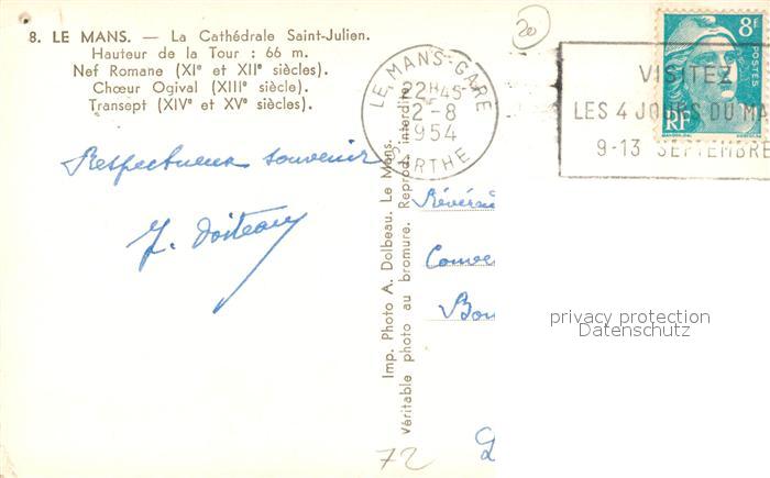 13487709 carte postale Le Mans Sarthe Cathedrale Saint Julien postalisch gelaufen Erhaltung siehe scans [LiesaD40] KatCode: 11170072372181
