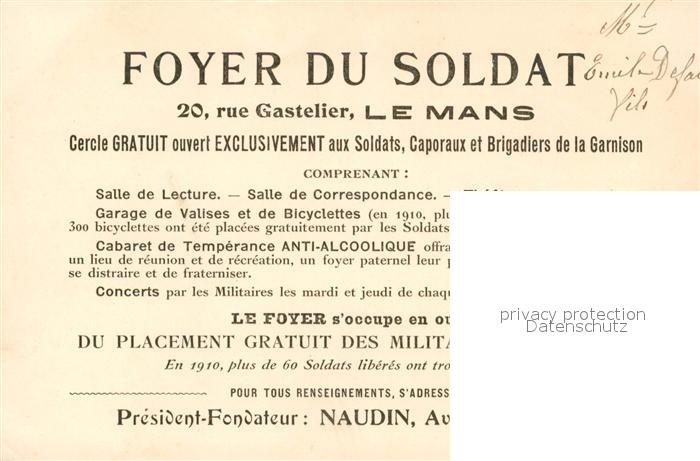 13582408 Le Mans Sarthe Foyer du Soldat Bibliothèque Salon de lecture et d Ecriture postalisch nicht gelaufen Keine Postkarte (siehe scan) Erhaltung siehe scans [FriedD77] Keine Postkarte (siehe scan) Frie Katcode 11170072372181