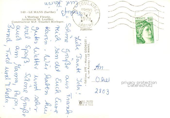 13019242 Le Mans Sarthe Horloge Fleurie KatCode 11170072372181