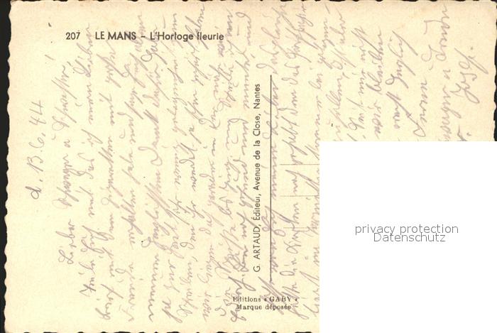 12240433 Le Mans Sarthe Horloge Fleurie postalisch nicht gelaufen Erhaltung siehe scans KatCode: 11170072372181