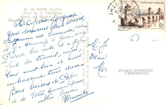 13535001 carte postale Le Mans Sarthe Place de la Republique Statue du General Chanzy postalisch gelaufen Erhaltung siehe scans [WerneD78] KatCode: 11170072372181