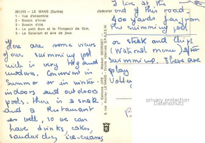 13786665 Le Mans Sarthe Vue d’ensemble Bassin d’hiver Bassin d’ete Le petit Bain et le Plongeoir Le Solarium postalisch nicht gelaufen Erhaltung siehe scans [WerneD78] Wern Katcode 11170072372181