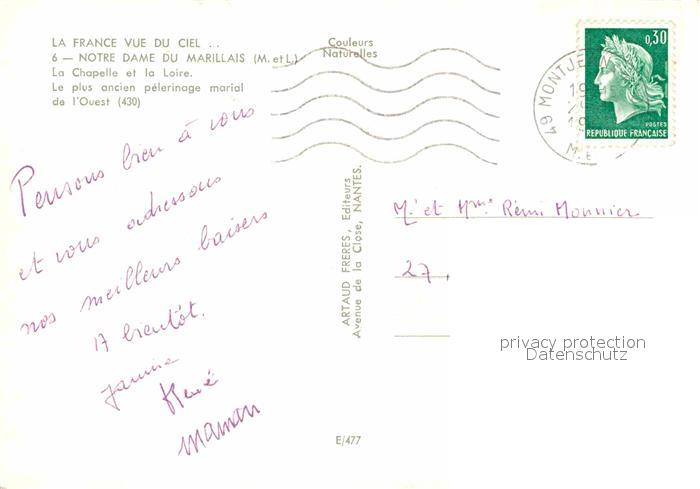12786027 carte postale Le Marillais Eglise Notre Dame Chapelle et la Loire vue aerienne postalisch gelaufen Erhaltung siehe scans [FriedD77] KatCode: 11170049249190