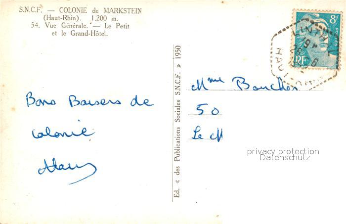 13608181 carte postale Le Markstein Vue Generale Petit et Grand Hôtel postalisch gelaufen Erhaltung siehe scans [FriedD77] KatCode: 11170068668247