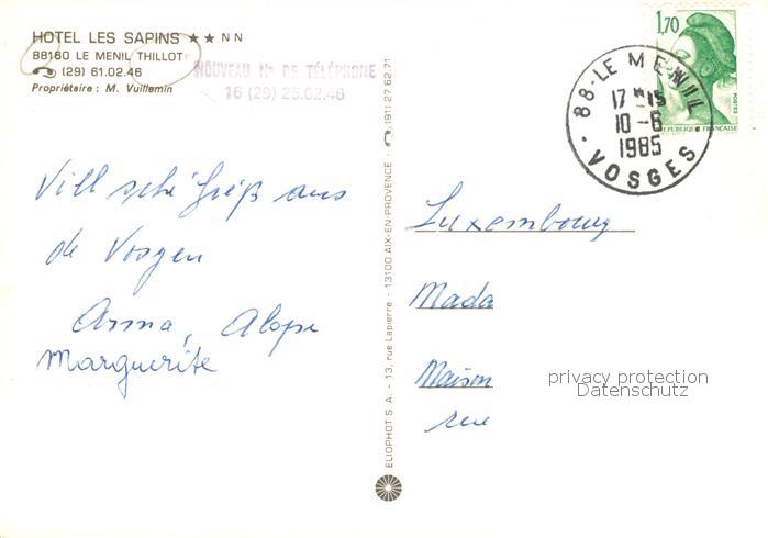 13789017 Le Menil 88 Vosges Hôtel Les Sapins postalisch gelaufen Erhaltung siehe scans [FriedD77] carte postale Frie Katcode 11170088188302