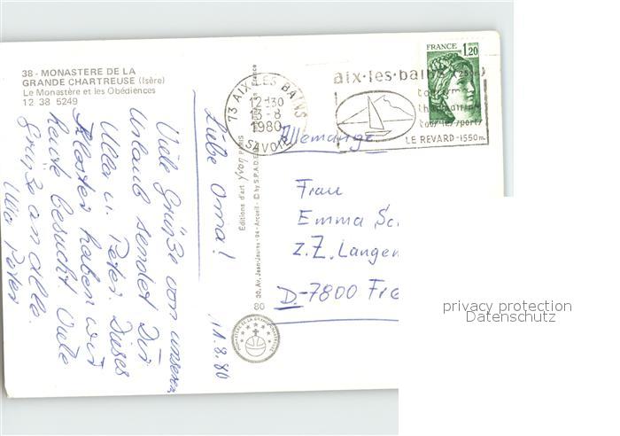 12331677 carte postale Le Monastere Monastere de la Grande Chartreuse Vue aerienne postalisch gelaufen Erhaltung siehe scans KatCode: 11170012212146