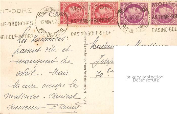 13527864 carte postale Le Mont-Dore Puy de Dome Etablissement Thermal grand escalier postalisch gelaufen Erhaltung siehe scans [FriedD77] KatCode: 11170063263236