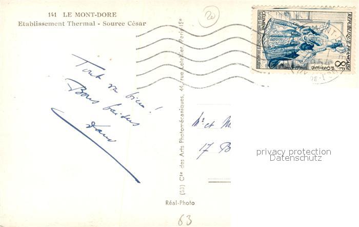 13524717 carte postale Le Mont-Dore Puy de Dome Etablissement Thermal Source César postalisch gelaufen Erhaltung siehe scans [FriedD77] KatCode: 11170063263236