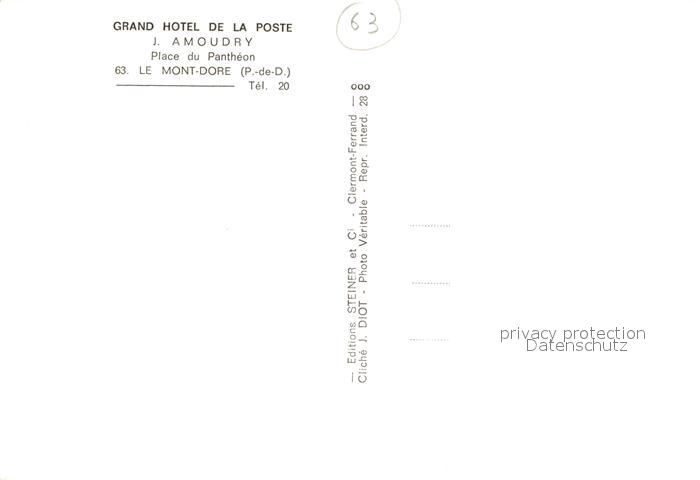 13279246 Le Mont-Dore Puy de Dome Grand Hotel de la Poste postalisch nicht gelaufen Erhaltung siehe scans [WerneD78] KatCode: 11170063263236