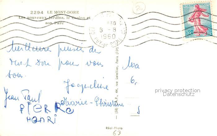 13524725 Le Mont-Dore Puy de Dome Nouveaux jardins casino et parc KatCode 11170063263236