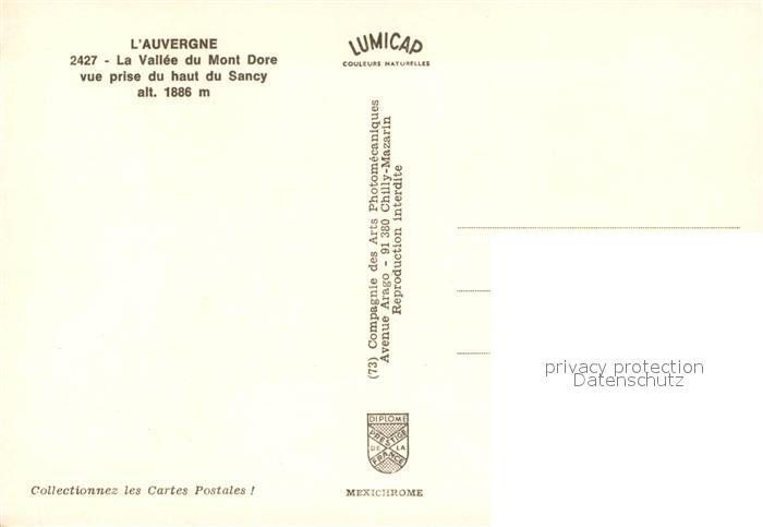 13244356 Le Mont-Dore Puy de Dome Vallee du Mont Dore vue prise du haut du Sancy téléphérique postalisch nicht gelaufen Erhaltung siehe scans [FriedD77] KatCode: 11170063263236