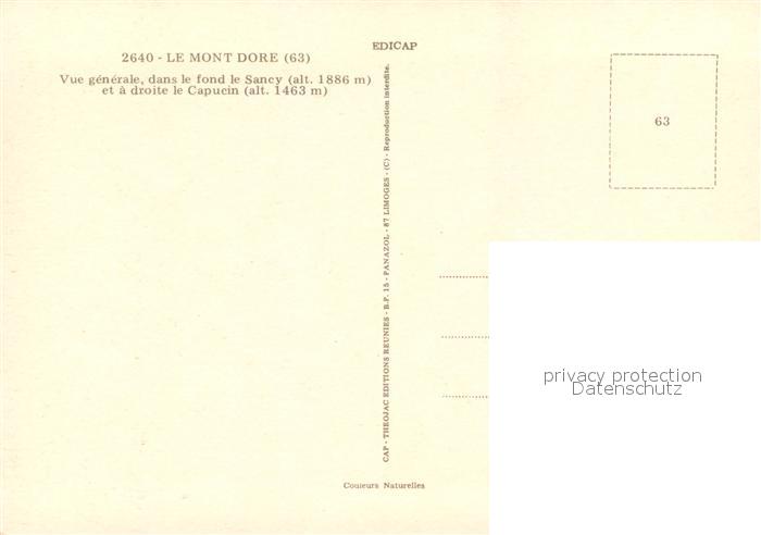 13625612 Le Mont-Dore Puy de Dome Vue generale dans le fond le Sancy et a droite le Capucin postalisch nicht gelaufen Erhaltung siehe scans [FriedD77] Frie Katcode 11170063263236